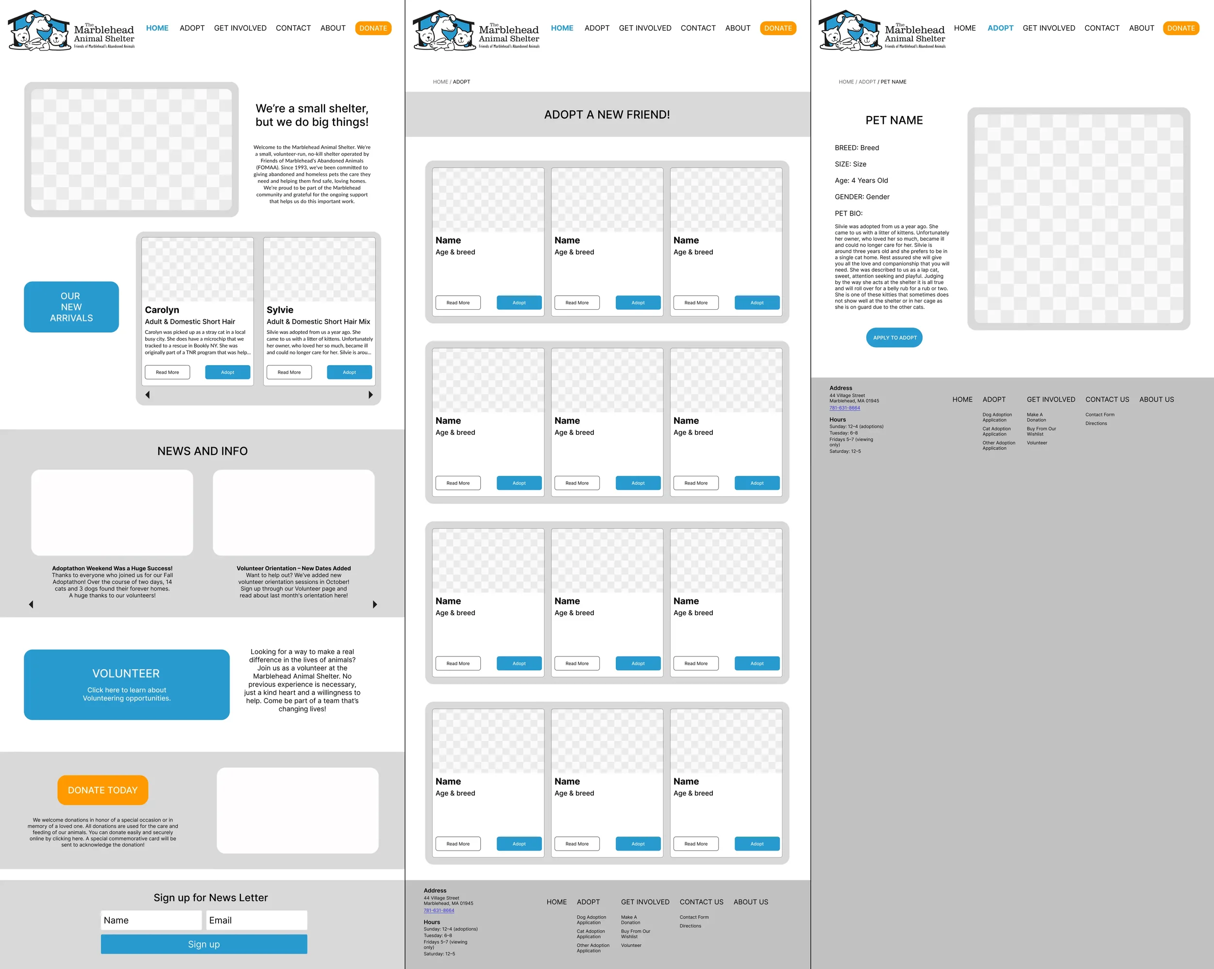 Featured Below: My Home Page, Adoption Page, and Pet Profile Page